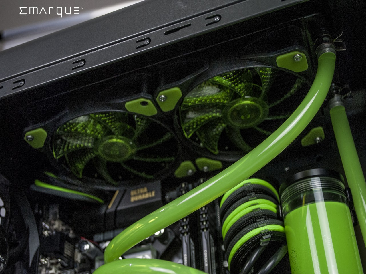 Not the best-looking setup around but you can make it better with some colored coolant and specialized fittings like what our sponsor from Emarque did:
