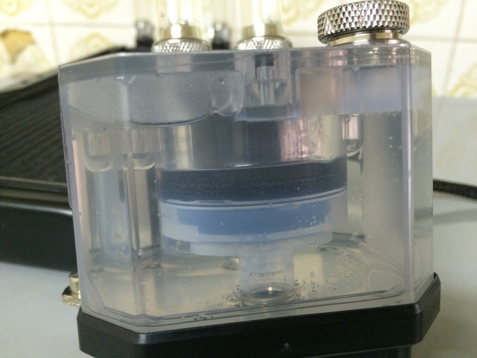 As the pump reservoir unit is translucent, we’re able to actually observe the flow of liquid that goes through the entire loop.