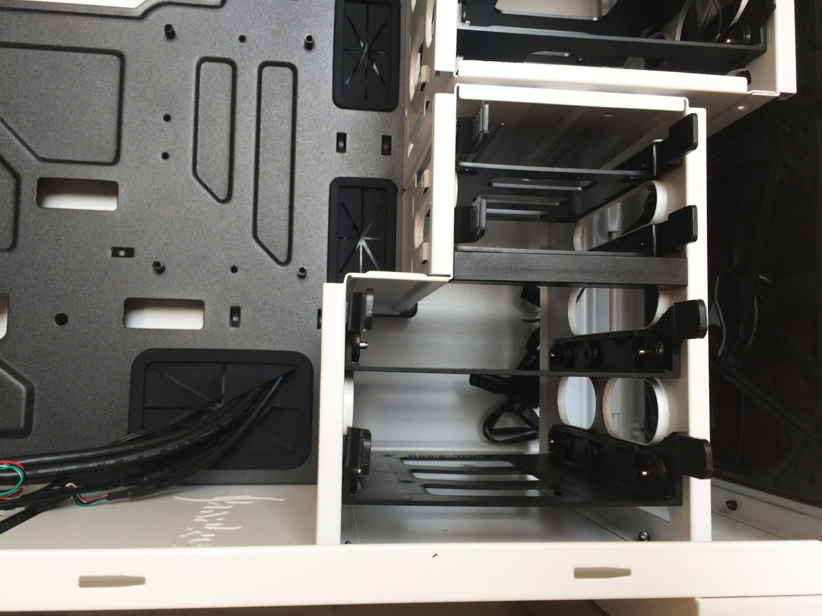 - Installing radiator at the front of the chassis requires the removal of the middle HDD cage