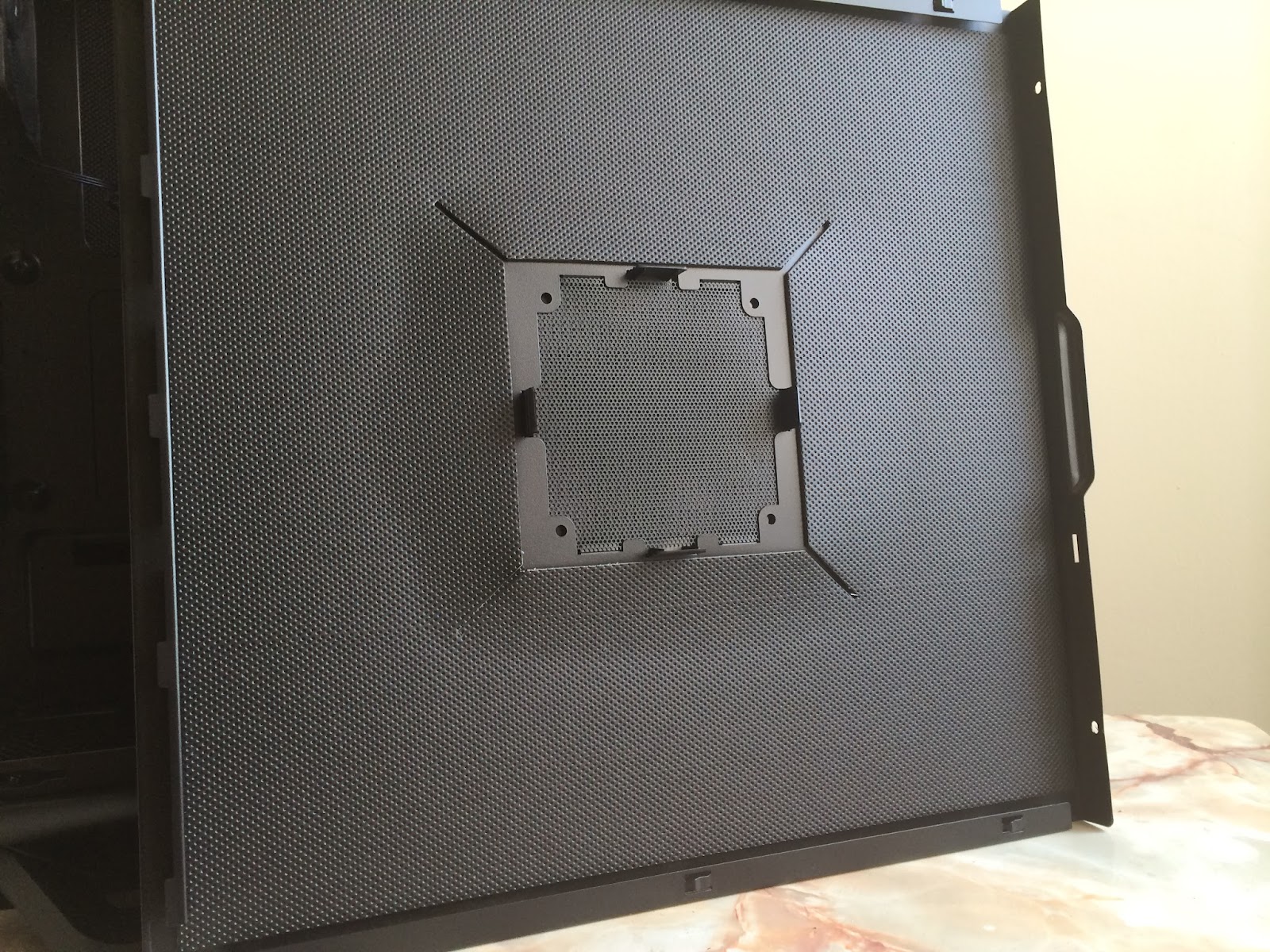 The bottom panel has a similar design as the top panel, but due to the limited cooling option, 140mm fan is the maximum fan size that will fit in this space.