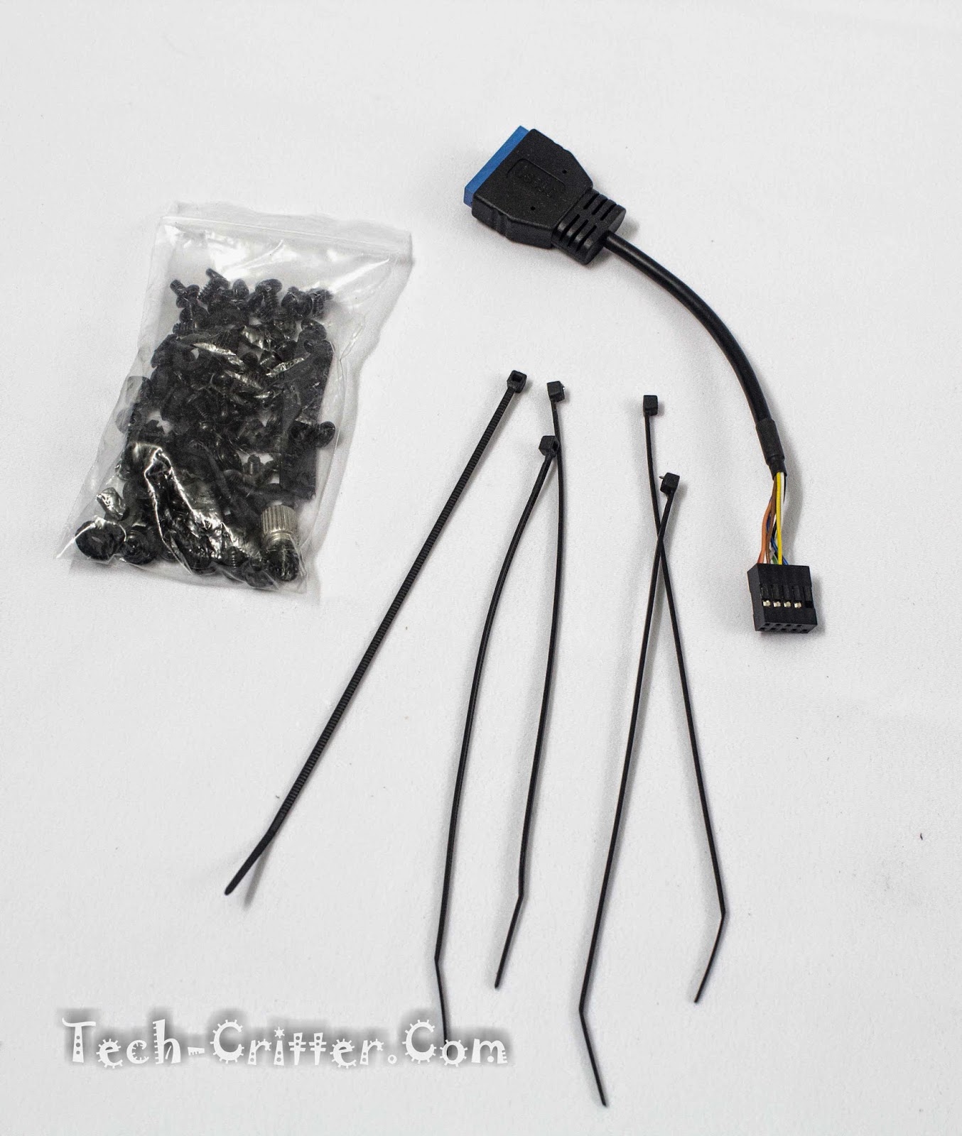 Not forgetting the accessories, emptying out the brown box found earlier will yield a bag of mounting screws, some cable ties and an internal USB3.0 to USB2.0 adaptor cable.