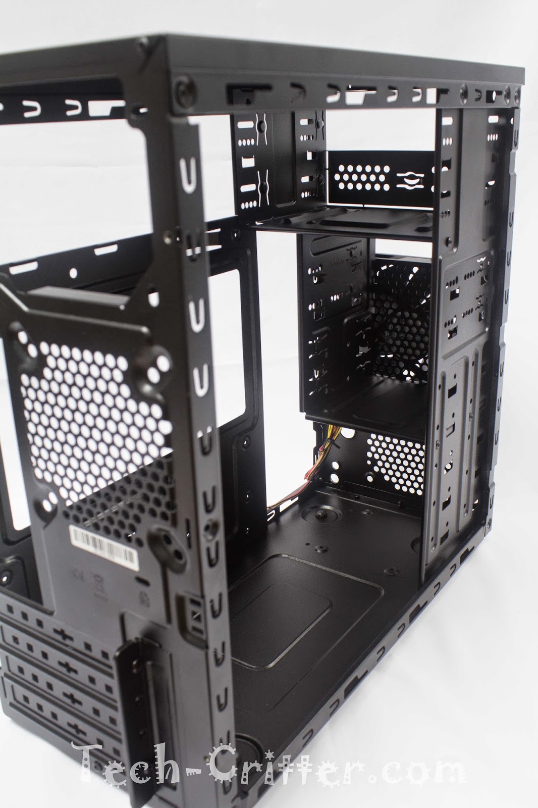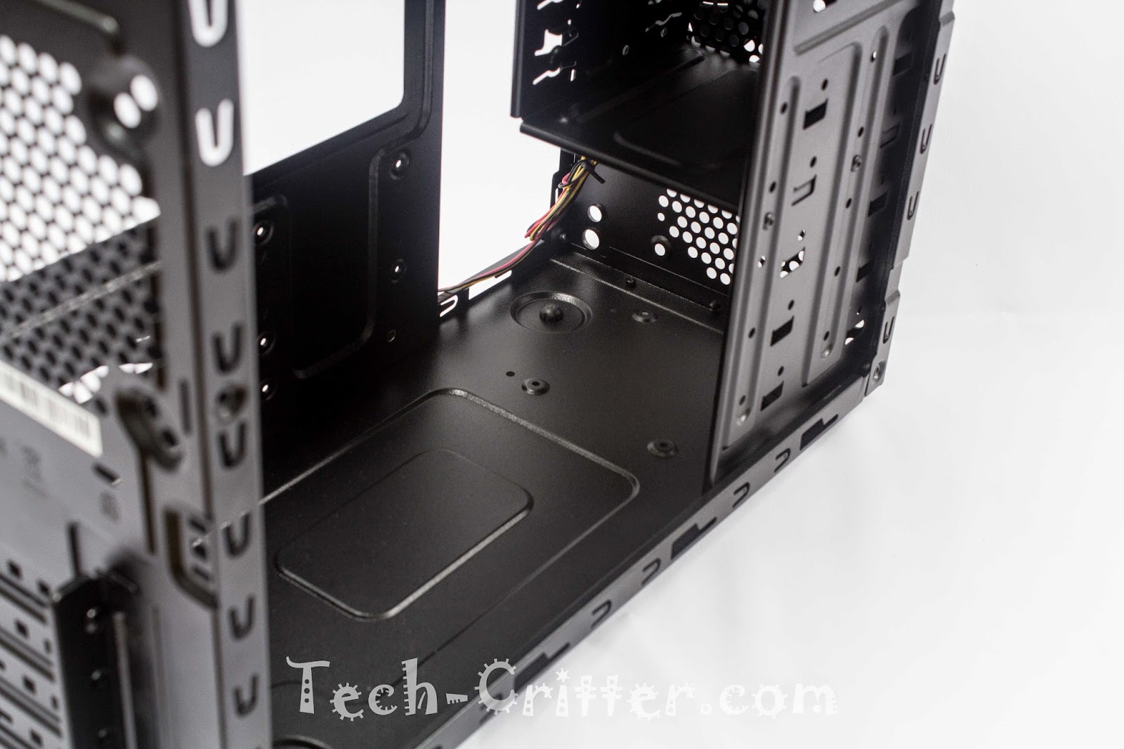 Note the large cut-out on the motherboard tray, this makes it easier to swap third party CPU coolers later on and rest assured that the motherboard tray is solid despite the big opening. The drive bays are void of any tool-less mounting mechanisms so best to get your screw drivers handy.