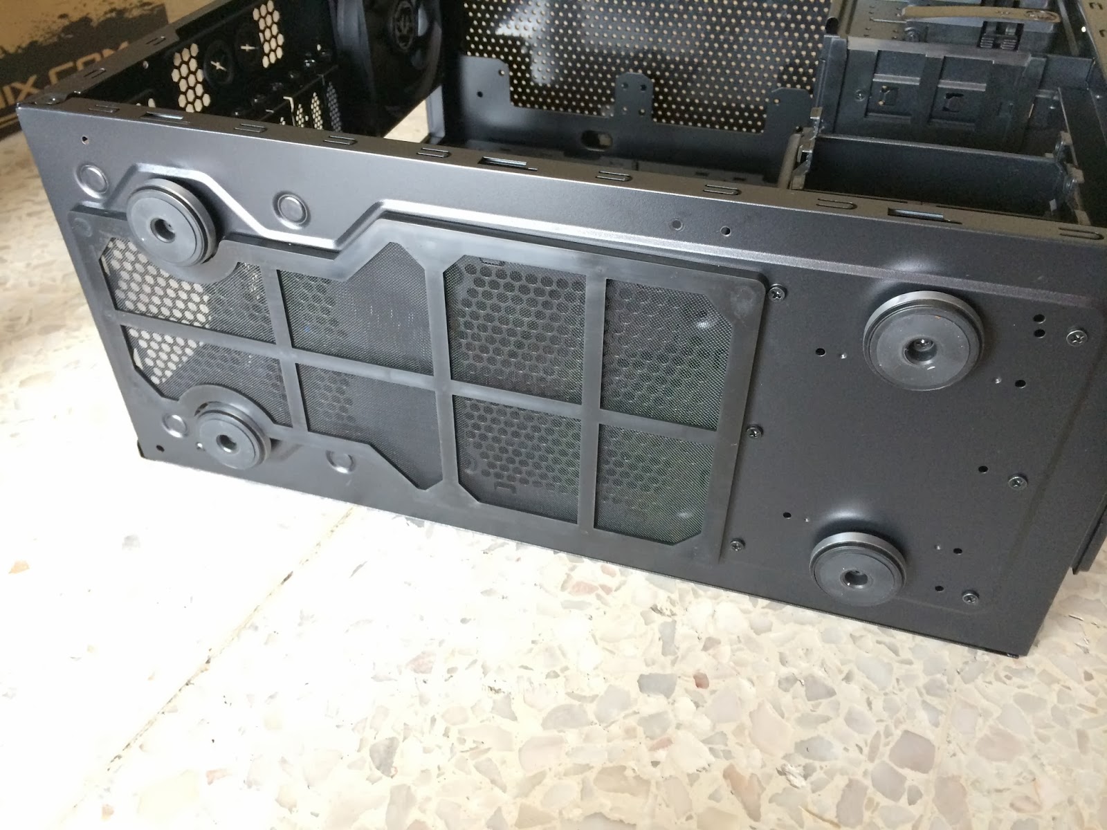 You have 4 pieces of large rubber feet with shiny awesome looking metal rings at the bottom of the Ronin, some perks for the premium look – it actually looks great. A large dust filter is included as well for dust filtering.