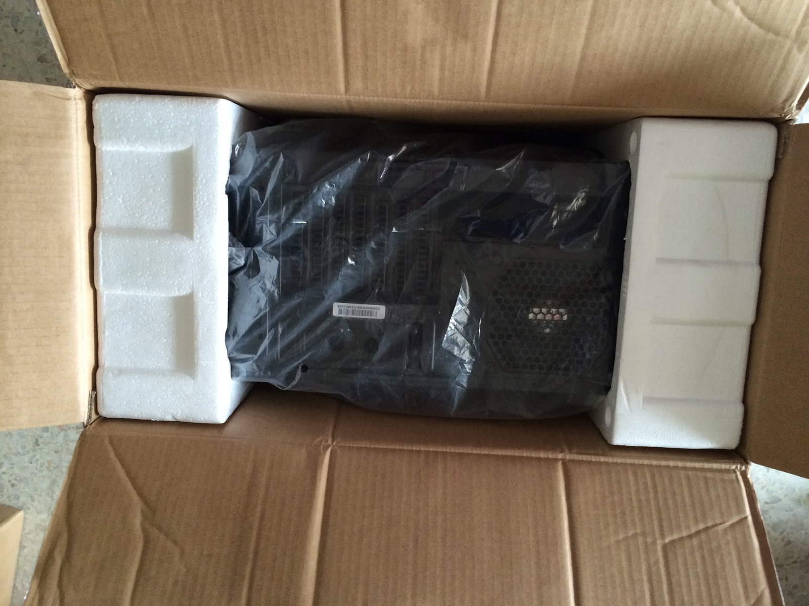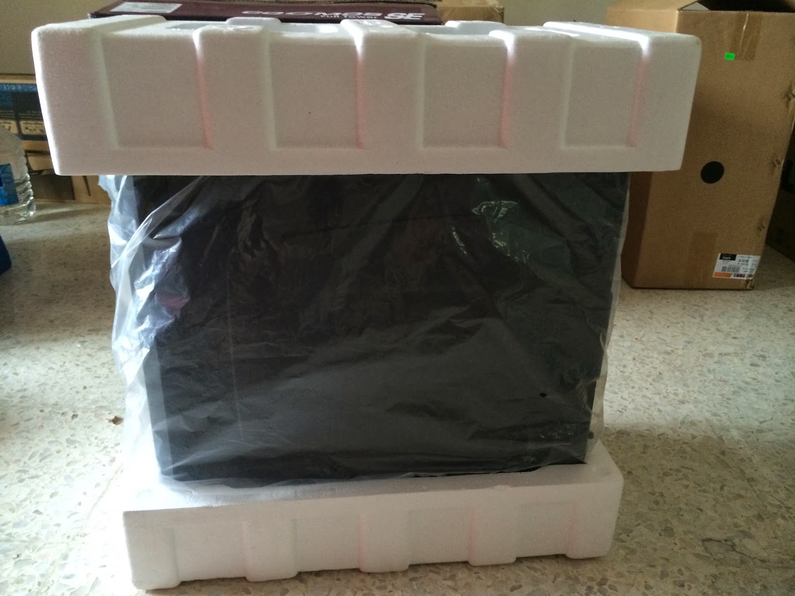 The Cosmos SE is seen flanked by 2 pieces of thick polystyrene that act as a protection layer to absorbs shock and prevent the chassis from getting damaged if there’s any improper handling during transport. It allows you to have things arrived in the best condition possible