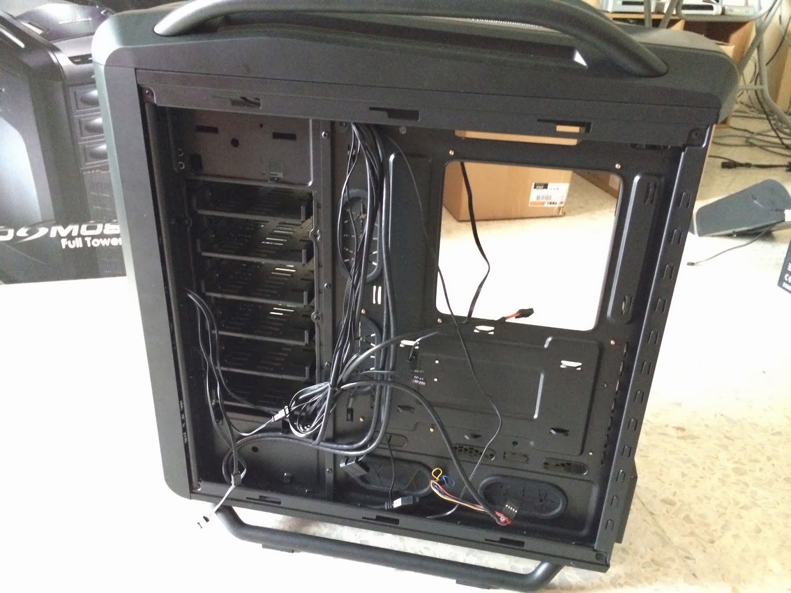 Thick radiators will fit as well on the Cosmos SE, but make sure you’re not using a motherboard with a low compatibility for top radiator, especially the Sabertooth Z87 from Asus. But if you do, no worries as the good news is that you still get to set things up in either push or pull configuration where the fans is installed at the top.