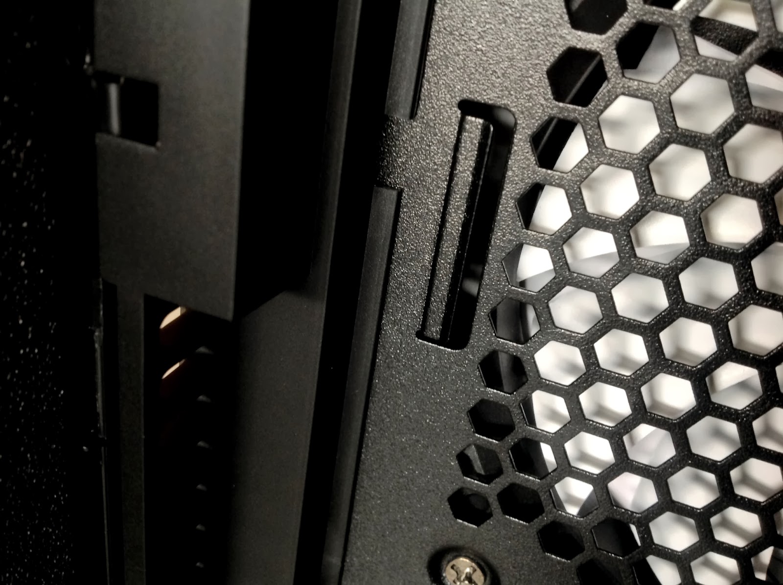 Since the front panel is covered by the Aluminum piece, the air intake for QT01 is from the side of the front panel. If anyone is concern about the air intake amount from such tiny gaps, our answer for you is not to worry, if will do just fine.