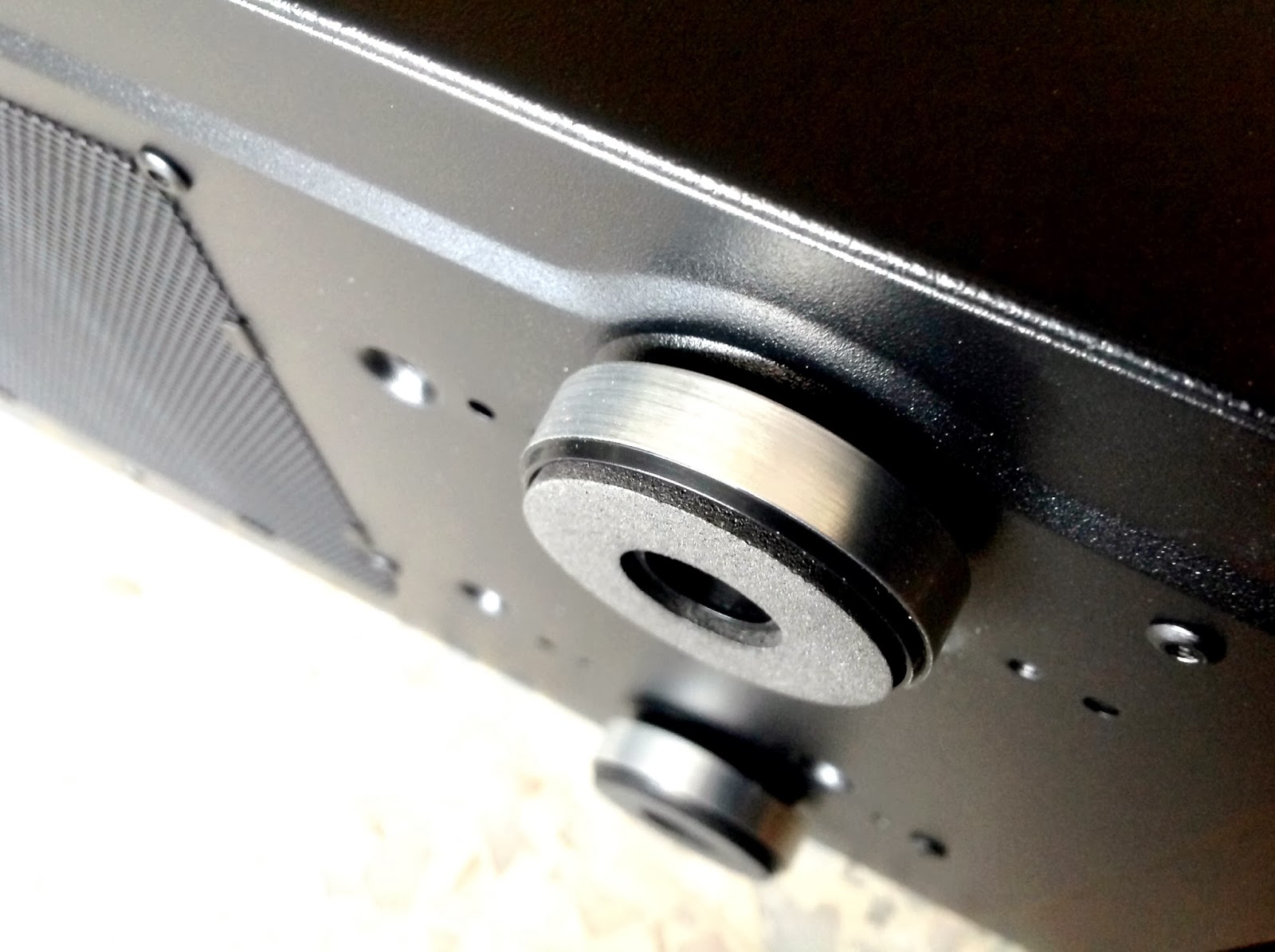 Here’s the element of blinginess, large soft rubber feet with the goodness of shiny Aluminum that gives the QT01 a premium look and the ability to absorb part of the vibration caused by moving parts inside the chassis that will generate noise when vibrating against the surface it came in contact with.