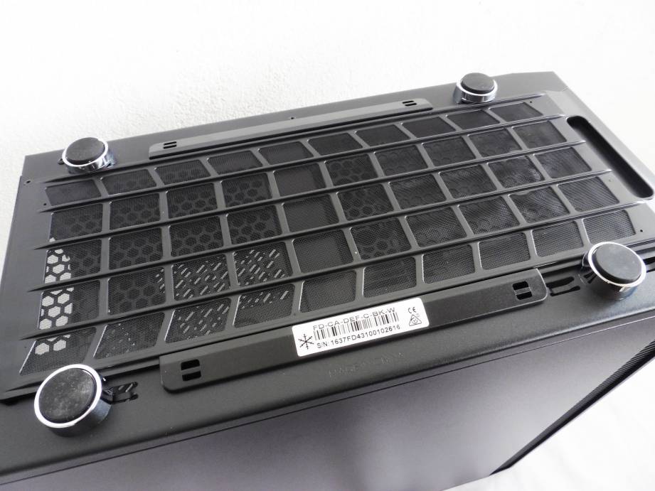 The front of the Define C comes with a removable dust filter to reduce dust intake and ease of cleaning. With the dust filter removed, we can see that the Define C is able to support radiator for water cooling setup, up to 360mm or 280mm. Do note that a 360mm radiator requires the removal of the top cover of the PSU cover, which its screws has to be removed from the front of the chassis.